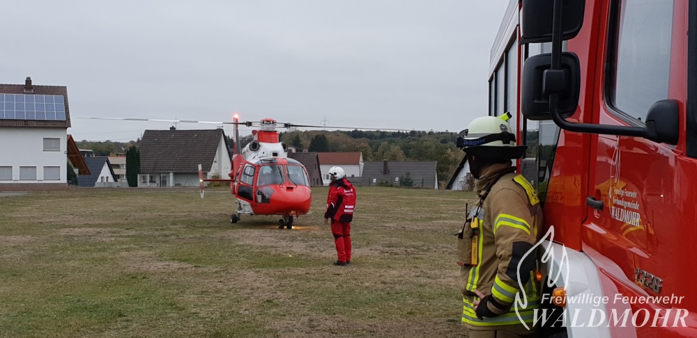 Parallel zum FR-Einsatz wurde die Feuerwehr zur Hubschrauberlandesicherung alarmiert. Über die Leitstelle wurde der Platz vor der TV-Halle als Landeplatz abgesprochen. Notarzt und Notfallsanitäter wurden vom Landeplatz zur Einsatzstelle gefahren.